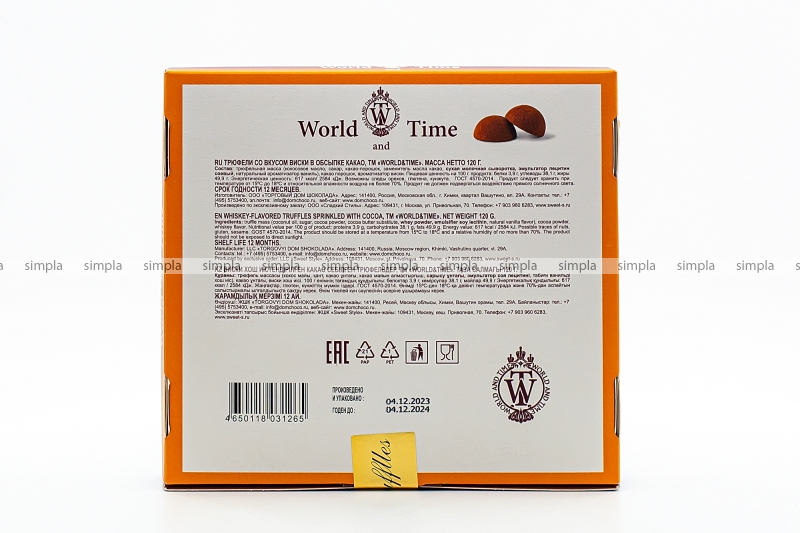 В нашем интернет-магазине Вы можете купить "Нежный трюфель World & Time со вкусом виски в обсыпке какао 120 гр" по низкой оптовой цене с быстрой и удобной доставкой в г.Брянск (Брянская область). Мы предлагаем широкий ассортимент импортных сладостей и напитков от проверенных поставщиков и реализуем продукцию во всех регионах РФ.
