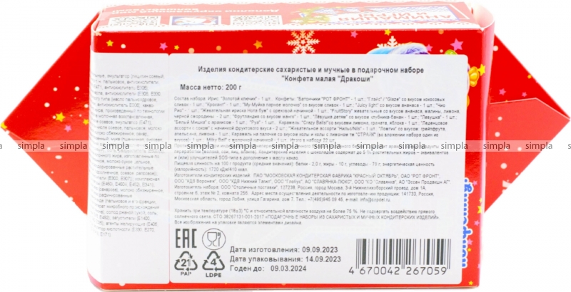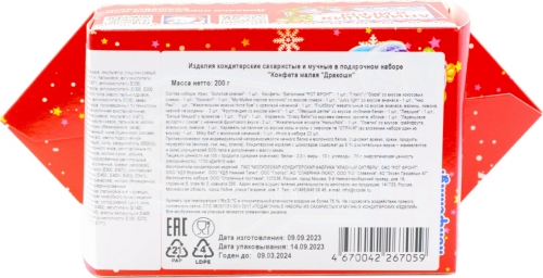 В нашем интернет-магазине Вы можете купить "Новогодний подарок Под'Ари Конфета малая Дракоши 200 гр картон" по низкой оптовой цене с быстрой и удобной доставкой в г.Брянск (Брянская область). Мы предлагаем широкий ассортимент импортных сладостей и напитков от проверенных поставщиков и реализуем продукцию во всех регионах РФ.