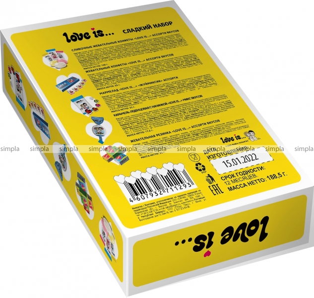 В нашем интернет-магазине Вы можете купить "Сладкий набор Love is… 188,5 гр" по низкой оптовой цене с быстрой и удобной доставкой в г.Брянск (Брянская область). Мы предлагаем широкий ассортимент импортных сладостей и напитков от проверенных поставщиков и реализуем продукцию во всех регионах РФ.