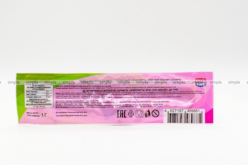 В нашем интернет-магазине Вы можете купить "Взрывная карамель с татуировкой Канди Клаб Приколисты Клэп Слэп браслет ассорти 1 гр" по низкой оптовой цене с быстрой и удобной доставкой в г.Брянск (Брянская область). Мы предлагаем широкий ассортимент импортных сладостей и напитков от проверенных поставщиков и реализуем продукцию во всех регионах РФ.